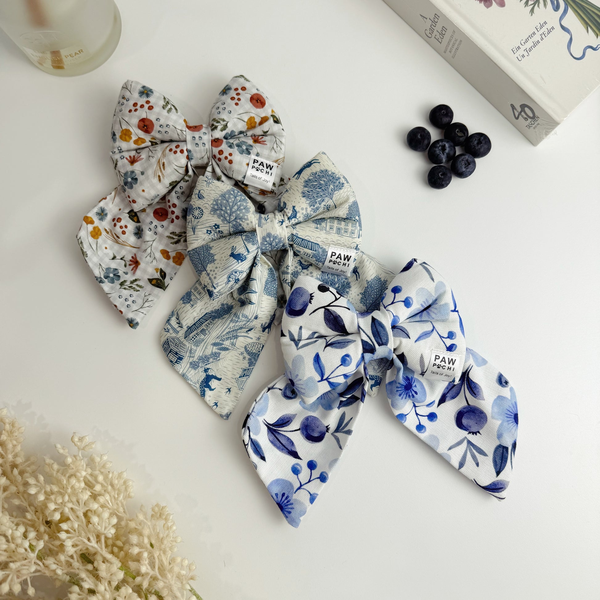 Inspired by watercolor florals and delicate blueberry tones, Blueberry Meadow brings a fresh, graceful charm to your pet’s everyday look.