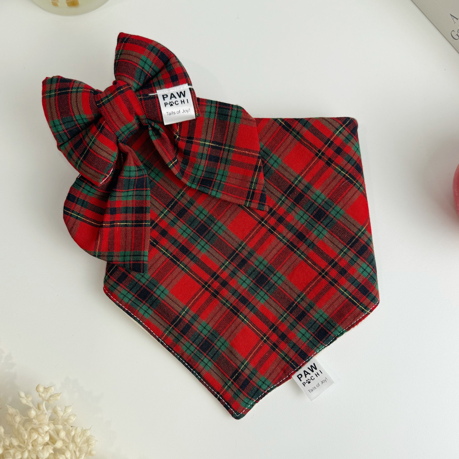 Tartan Royale is a premium dog bow tie featuring traditional red–green tartan, perfect for Christmas celebrations, portraits, and stylish everyday wear. A must-have for pets who carry a classic charm.